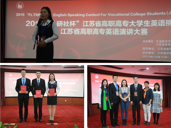10月16日-17日,2015年“外研社杯”省高职高专英语演讲大赛在南京举行。大赛由江苏省教育厅指导,江苏省高校外语教学研究会和外语教学与研究出版社联合主办,分预赛、复赛和决赛三个阶段。预赛由参赛各校进行校内选拔,经各校预赛产生的174名选手于10月16日和17日进行复赛和决赛的现场对决。复赛阶段,选手根据抽签顺序进行以《Three days to go, without the Internet》为主题的3分钟定题演讲并回答评委提问。经过复赛阶段的激烈角逐,最终有32名选手成功跻身决赛。决赛采取选手现场抽题即兴演讲和外籍评委随机提问的方式,围绕着怎样理解“前人栽树,后人乘凉”、“千里之堤毁于蚁穴”等中国元素展开话题,重点检验选手的英语口语表达能力、综合文化素质和临场应变能力。学院选送的三名选手在本次演讲大赛中表现突出,喜获佳绩。戴灵敏(14级海本会计专业)获大赛二等奖、朱晟琦(14级海本会计专业)和仲添宇(14级空乘专业)同学分获大赛三等奖;黄丹卉和甘饴老师被评为“优秀指导教师”。