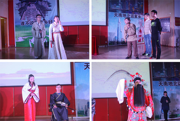 “家乡秀”比赛分为方言PPT展示、地方特色才艺展示两个环节。来自七个院系的选手以地方特色为基础,用轻松幽默的小品、富有深意的话剧、精彩纷呈的舞台剧、唯美动听的歌舞,向观众们展示了南京、扬州、徐州、山西、云南、贵州等地的风土人情和独特的文化特色。汽车工程学院选手出演的《西云南山疯狂PK》灵活生动地展现了云南聚居的各民族平等友爱的生活;运输管理学院选手带来的《美食风波》蕴含的细腻、充沛的情感诉说了每个人对“家乡味道”的不舍和眷恋;人文艺术系表演的《荷都奇遇》以奇妙的境遇、跌宕的情节,引人入胜的场景将人带入唯美的幻境。近两个小时的活动,充分展示了各地特有的物产、文化,有效激发了同学们爱家乡、爱祖国的热情。
