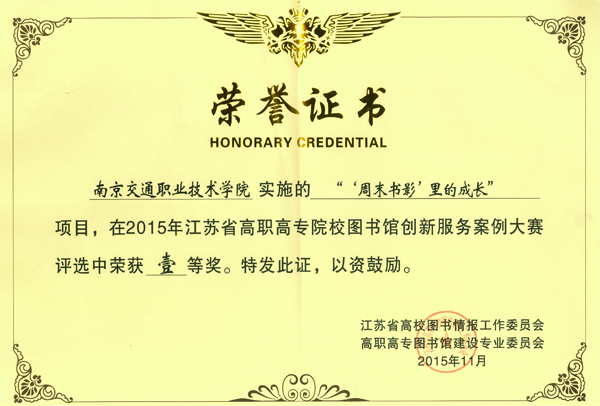 11月11至13日,江苏省高职高专图书馆建设专业委员会第十五次年会暨学术研讨会在徐州召开,会议以“变革·创新”为主题,对2015年全省高职院校图书馆创新服务进行了展示及表彰。学院图书馆提交的创新服务项目《“周末书影”里的成长》获一等奖,并应邀在大会上作交流发言。
