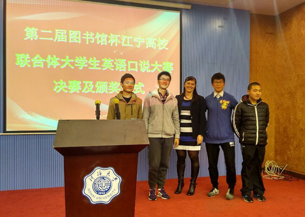 “图书馆杯”英语口说大赛旨在积极鼓励大学生关注国情大事、善用图情文献资源、大胆练说英语。比赛分英语专业组和非英语专业组进行,初赛以英语类数据库为平台,通过学生自愿注册、在线口说、上传录音、自生成绩等方式进行;决赛选取“环保”、“二孩”为主题进行现场演说,3名外籍英语教师担任现场专业评委。本届比赛参赛学校已突破江宁地区高校限制,共有来自南京地区20所高校参赛,每个组分取一等奖1名、二等奖2名、三等奖3名、鼓励奖4名。