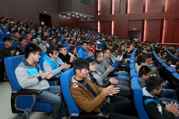 郦波教授随后以《孔子的歌与泣》为题作讲座。他指出,真正的温暖是精神的滋养。他从启蒙主义思想家伏尔泰的思想来源于东方的孔子这一论断出发,结合常枞、庄子、李白、秦观等文化先哲、诗人对于生活的态度,探讨了孔子临终前“歌”与“泣”的丰富内涵,引申出悲剧美、崇高美对于心灵的净化作用以及儒学的思想旨归是对于现世人生的深切关怀。郦波教授在讲座中且歌且诵,以现代视角诠释中国传统文化的主旨,兴味盎然、风趣幽默,为现场观众充分展示了传统文化以及传统文化濡染下的人格的魅力。讲座中,他还阐释了孔子教育思想的核心意义以及对于素质教育的启发。长达两个半小时的讲座中,现场师生接受了一次生动的传统文化洗礼,感受了智慧的启迪和文化的力量。现场气氛热烈,不时爆发出热烈掌声。