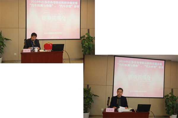 12月28日,应学院邀请,2015年江苏省高等职业院校技能大赛 “汽车检测与维修”、“汽车营销”赛项裁判长魏世康、鲁植雄,来院开设赛项说明会。来自省内20多所高职院校40余老师参加了会议。