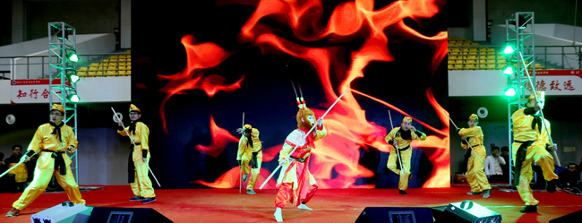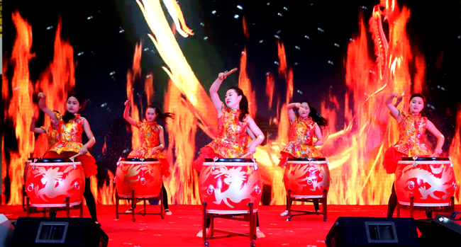 学院大学生艺术团喜庆祥和的《金猴闹春》和激越动感的《水鼓》表演拉开了联欢活动序幕。