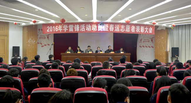 3月4日下午,学院2016年度学雷锋活动动员暨春运志愿者表彰大会在明德楼报告厅召开。学院党委许正林副书记、党办(宣传部)、学工处、团委等部门负责人参加了会议。春运服务单位代表,宁沪高速公路经营发展公司颜耘经理、党总支蒋洪芬副书记等应邀出席会议。