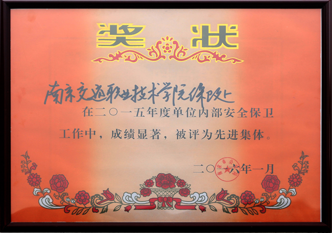 在日前召开的高新园2016年度安全生产、食品安全、消防安全工作会议上,学院获“安全生产先进单位”称号。在驻园15所院校中仅有两所获此荣誉。同时,学院保卫处还被南京市公安局评为“2015年度安全保卫工作先进集体”。