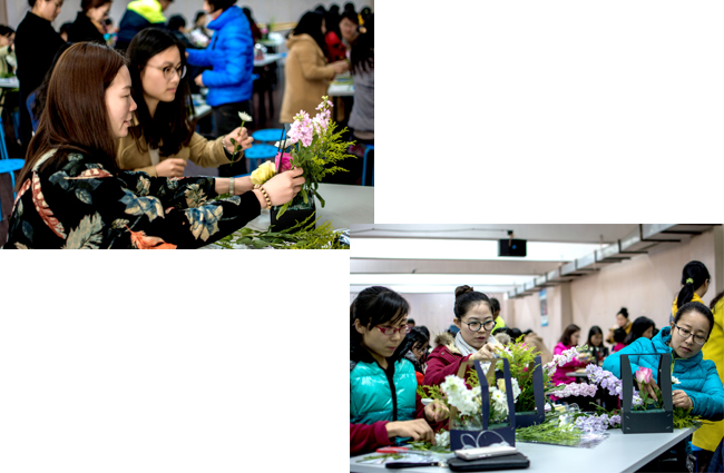 为丰富女教职工精神文化生活,陶冶生活情趣,3月23日,学院工会邀请花艺老师在大学生活动中心举办了一场“春暖花开”花艺培训讲座。近70名女教职工参与了活动。活动过程中,花艺老师讲解了东西方插花艺术的特色及区别,插花的基本花型、技巧和注意事项等相关知识。在花艺老师的悉心指导下,女教职工们掌握了插花基本技能,精心构思,认真修剪,通过现场制作出的一件件春意盎然、清雅别致的插花作品,享受到插花艺术带来的乐趣。
