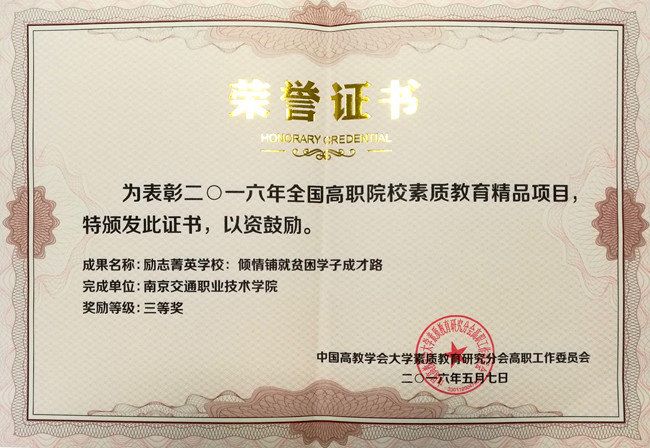 近日,从中国高教学会大学素质教育研究分会高职工作委员会2016年学术年会上传来好消息,学院选送的《我能故我在-高职园林专业创新创业能力培养》和《励志菁英学校:倾情铺就贫困学子成才路》两个项目分获2016年全国高职院校素质教育精品项目一等奖和三等奖。