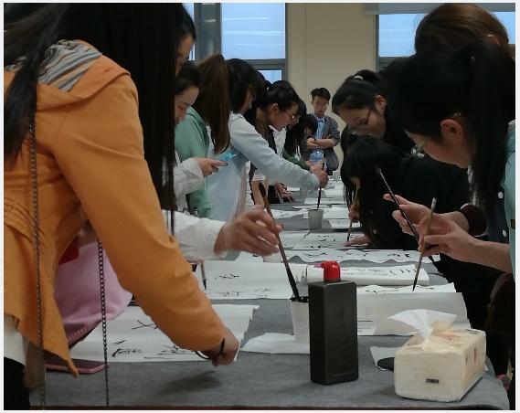 【我的艺术我的秀•书法魅力尽显】4月28日晚,“我的艺术我的秀”——殷苹个人书法作品展、书法社团团长陆启康现场书画笔会在图书馆五楼举办,现场约有60名同学参与。赏心悦目的书法作品、丰富的书法知识、淡淡的墨汁香味,勾起了现场同学练习书法的极大兴趣。瞧!他们迫不及待地拿起毛笔动手练练呢!也有同学表达了后续长期练习书法的意愿。我的艺术我的秀,是我院图书馆“5F智咖”开设的常年项目,目的是为了给学生提供展现自我的平台,6月还将开展DIY手工作品、玻璃绘、石头绘等艺术交流活动。