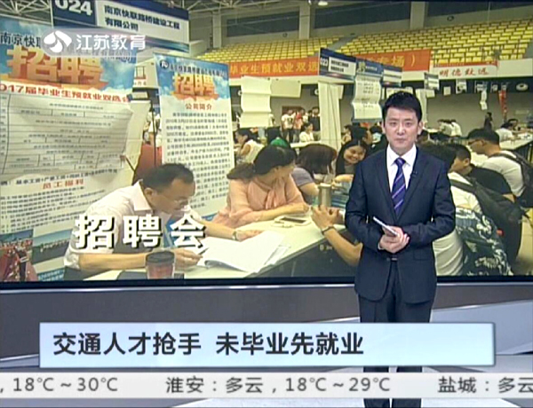 江苏卫视教育频道当天《江苏教育新闻》以《交通人才抢手 未毕业先就业》为题报道了本次招聘。