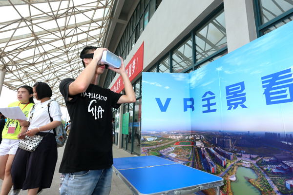 VR眼镜内置多场景的校园风貌,“全景看校园”让新生“身未动,心已远”