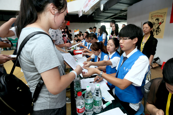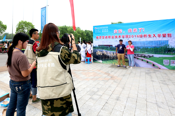 大学生记者团免费为新生和家长留下交院第一天的珍贵合影