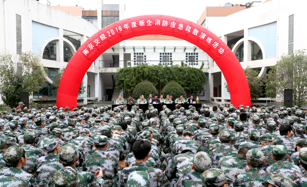 为深入贯彻落实《高等学校消防安全管理规定》、《江苏省“消防进军训”工作实施方案》等上级文件的精神和要求,切实做好学院校园火灾突发应急处置能力。10月14日下午,学院在思源堂广场举办“2016年度新生消防应急疏散演练”活动。副院长周传林,南京市公安消防支队江宁大队东山中队队长马雷,2016级新生军训团全体成员、各二级学院(系)及相关职能部门负责人出席活动。2016级全体新生,公寓管理员、食堂员工参加了演练。