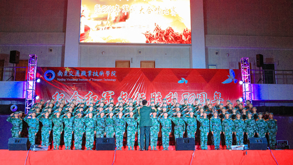 为纪念中国工农红军长征胜利80周年,加强青年学生的爱国主义教育,丰富2016级新生军训文化生活,学院于10月19日晚在行健馆举行了纪念红军长征胜利80周年暨2016年军训大合唱比赛。党委书记贾俐俐、副书记许正林及2016级军训团全体成员出席观看。