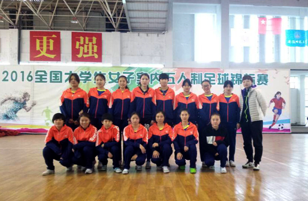 由中国大学生体协主办、安徽省教育厅协办、安徽师范大学承办的2016全国大学生女子室内五人制足球锦标赛于11月17日至26日在安徽芜湖举行。学院女子足球队经7轮比赛激烈角逐,最终获得了校园组第八名的好成绩。本次锦标赛共有30支参赛队伍,云集全国知名高等院校,学院代表队是30支参赛队伍中唯一的一所高职院校,比赛充分展示了学院女子足球健儿不畏强手,顽强拼搏的精神和精湛的球技。