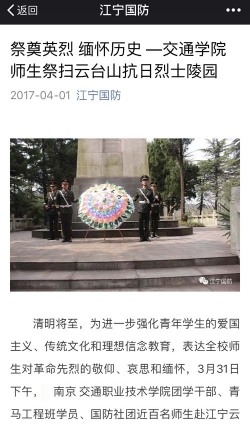 清明将至,为进一步强化青年学生的爱国主义、传统文化和理想信念教育,表达师生对革命先烈的敬仰、哀思和缅怀,3月31日下午,学院近百名师生赴江宁云台山抗日烈士陵园,祭奠长眠在此的抗日烈士英灵。