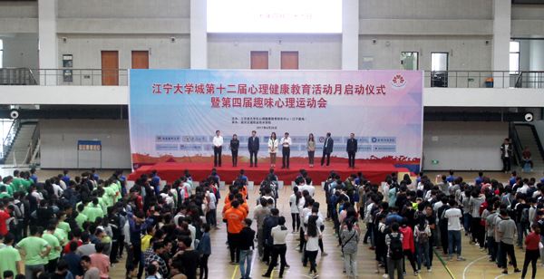 4月26日下午,江宁大学城第十二届大学生心理健康教育活动月启动仪式暨第四届趣味心理运动会在学院行健馆隆重举行。江苏省教育厅高校学生处主任张丽娜,院党委副书记许正林,江苏省江宁大学生心理健康教育中心(江宁基地)主任郑爱明,江宁大学城19所兄弟院校心理健康教育工作负责人,学院各院系心理辅导员和近400名运动员参加了活动。学院学工处处长康建军主持活动。