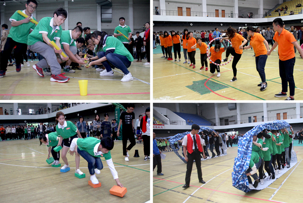 启动仪式结束后,江宁大学城第四届趣味心理运动会拉开帷幕,比赛共设管道传球、无敌风火轮、摸石过河、不倒森林、呼啦圈过山车五个项目,所有项目均为6-20个人的团队合作完成。经过激励的角逐,学院代表队以总分第一名获得团体特等奖;南京旅游职业学院、江苏经贸职业技术学院获团体一等奖;金肯职业技术学院、江苏海事职业技术学院、三江学院、南京机电职业技术学院、南京航空航天大学金城学院、南京工业大学或团体二等奖;正德职业技术学院、南京医科大学、中国药科大学、东南大学、南京工程学院、河海大学、南京航空航天大学、南京晓庄学院、南京工业大学浦江学院、金陵科技学院获团体三等奖。