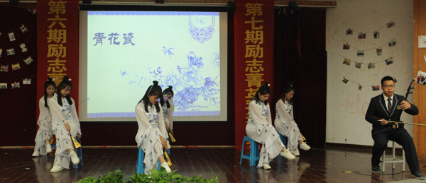 第六期励志菁英学员学员们通过分享感悟、才艺表演向师生们展示他们一年来的收获。课程分享中,学员们自信满满地将自己的成长娓娓道来。虽是乐器初学者,他们却用葫芦丝、二胡、陶笛将一首首名曲演绎得娴熟自如;集体舞蹈《青花瓷》、诗朗诵《相信未来》、独唱《理想》让曾经内向腼腆的他们在舞台上充分表现出自信阳光;交院版《凉凉》将整个活动推向高潮,在场师生用热烈掌声为学员们的精彩表现喝彩。