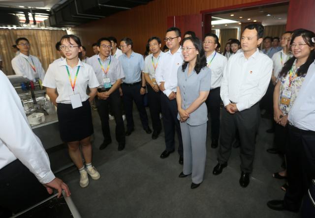 8月14日下午,2018“挑战杯—彩虹人生”全国职业学校创新创效创业大赛决赛开幕前夕,江苏省人民政府副省长陈星莺,共青团中央书记处书记李柯勇等领导莅临南京交院,视察大赛决赛展馆。共青团江苏省委书记王伟,省交通运输厅副厅长金凌,以及共青团南京市委、江宁区人民政府和学校领导陪同视察。