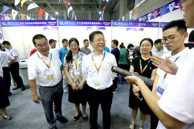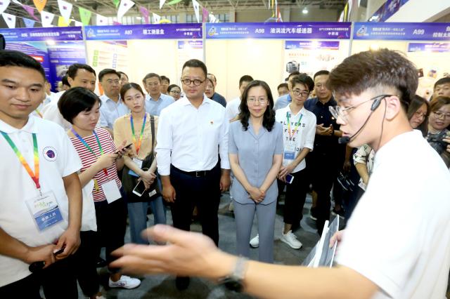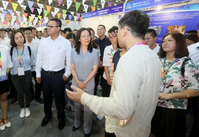陈星莺副省长,李柯勇书记一行来到展馆,详细了解了大赛作品布展情况并与部分选手就作品创意、技术应用等方面进行了交流,勉励选手积极备赛,取得佳绩。