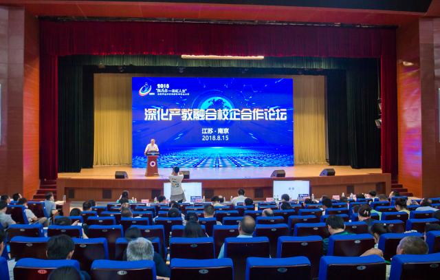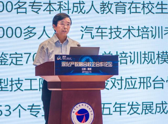 2018年“挑战杯—彩虹人生”全国职业学校创新创效创业大赛终审决赛正如火如荼之际,8月15日上午,“深化产教融合校企合作论坛”在学院图书馆报告厅举行。共青团江苏省委副书记林小异、教育部职成司高职发展处副处长任占营以及各省级团委负责同志,行业企业人士,参赛学校师生代表,正在学院学习的江苏省职业学校交通运输类专业骨干教师培训班学员等500多人参加本次论坛。学院张毅院长、许正林副书记、杨益明副院长及相关院系、职能部门负责人参加论坛。论坛由学院党委书记贾俐俐主持。