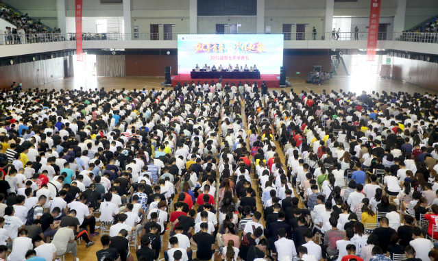 9月14日上午,南京交通职业技术学院2018级新生开学典礼在行健馆隆重举行。学院领导贾俐俐、张毅、许正林、周传林、应海宁、杨益明,各有关部门、各院系主要负责人、2018级全体新生及辅导员、班主任3700余人出席典礼。典礼由党委副书记许正林主持。