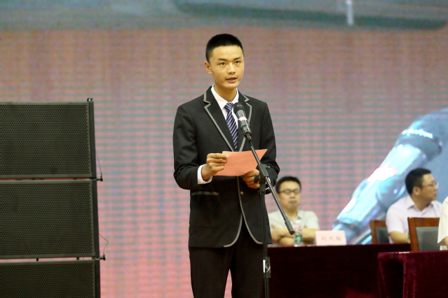 在校生代表、2018年“挑战杯——彩虹人生”全国职业学校创新创效创业大赛总决赛特等奖获得者运输管理学院城轨运173班岳若凡同学和全体新同学分享了他在校学习心得和感悟:“善于学习,学会独立思考,选择宽容,收获快乐”。电子信息工程学院通信182班卢发达代表全体新生发言,表示要增强学习的创造性和主动性,独立思考、细心观察、追求真理、谦虚严谨,用知识完善自我,以素质赢得发展。