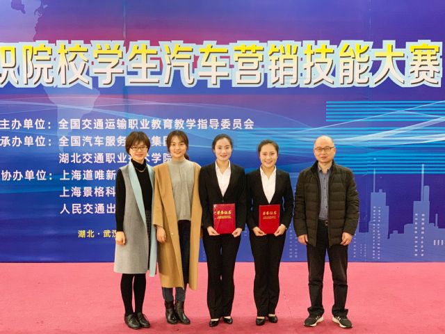 11月23至25日,2018全国高职院校学生汽车营销技能大赛在湖北交通职业技术学院举行。经过三个赛项的激烈角逐,学院代表队周庆、王阳(指导教师:刘凯迪、李娜)在全国25个省、自治区的45所职业院校90名参赛选手中脱颖而出,获得两个单项一等奖、一个单项二等奖,以及团体一等奖的好成绩。