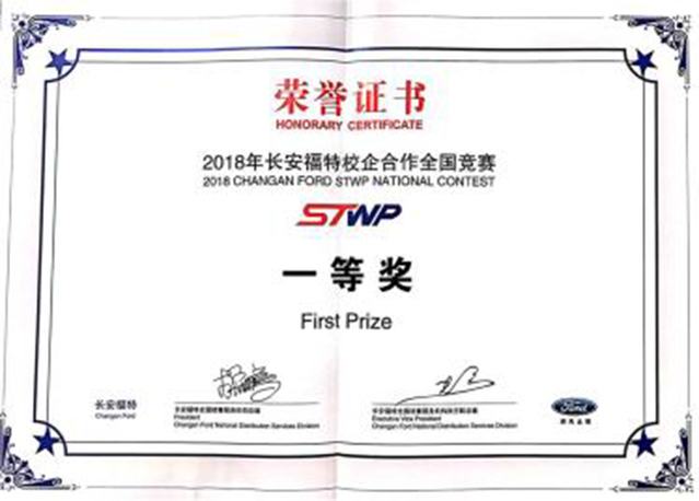 2018年长安福特校企合作项目年会近日在天津举行。来自全国23所合作院校的领导、定向班讲师代表和学生代表、长安福特大学教委会代表、经销商代表参会。年会旨在发布2018年度长安福特校企合作定向班报告,并对在2018年长安福特校企合作项目全国评比中取得优异成绩的院校和个人进行表彰。学院最终凭借优异的综合评比成绩荣获2018长安福特校企合作全国竞赛中获一等奖。长安福特校企合作全国竞赛评比指标共分为教学管理标准化考核、实习考评、技能鉴定大赛、就业成功率四项,总分为100分。文爱民老师荣获“模范项目负责人”称号,程丽群老师被评为“模范定向班讲师”,乔宗权、孙宏侠、朱帅三位老师被评为“优秀定向班讲师”。