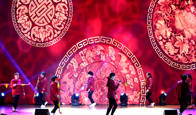 后勤人用欢快的民俗舞蹈《打钱杆》喜庆丰收