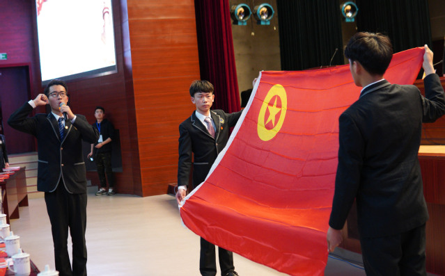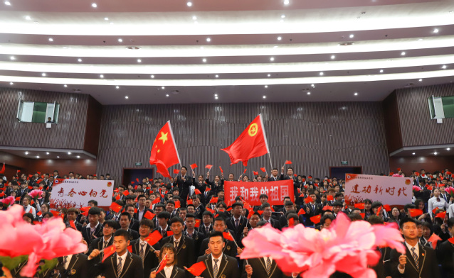 会议在全场红旗飘扬,师生共同齐唱《我和我的祖国》歌声中结束。表彰大会结束后,全体团员青年共同观看了五四主题电影《我的1919》。