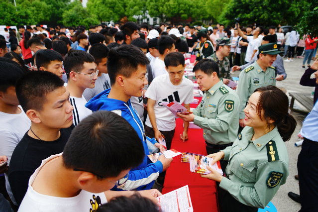 5月15日下午,学院思源堂广场人声鼎沸,600余名同学踊跃来到江宁区人武部“征兵宣传进校园”活动现场,围绕征兵宣讲人员和宣传展板,详细了解大学生征兵条件、报名途径及相关优惠政策等相关情况。区人武部政委张金星,学院副院长王道峰等亲临现场,为广大有志参军的同学提供咨询指导。