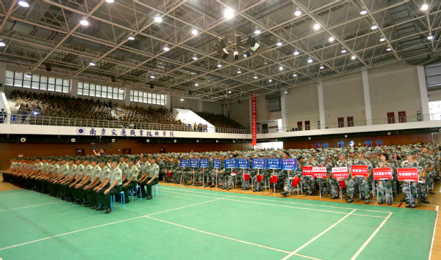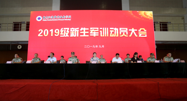 9月16日上午,学院2019级新生军训动员大会在行健馆隆重举行。学院党委书记贾俐俐作动员讲话并为2019级新生军训团授旗。党委副书记、新生军训工作领导小组组长周传林,承训部队副参谋长、新生军训工作领导小组组长李林,承训部队政治指导员、新生军训团团长王紫瑾,新生军训工作领导小组全体成员出席。
