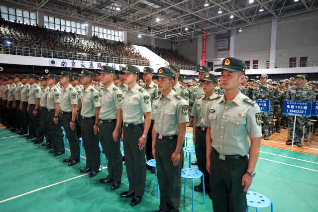在威武雄壮的中国人民解放军军歌声中,2019级新生军训工作正式拉开帷幕。半个月的时间里,全体参训新生将接受严格的队列训练、野外拉练等军事国防教育,和组织纪律、文明习惯等行为养成教育,在拼搏和汗水中开启大学生活激越昂扬的第一页。