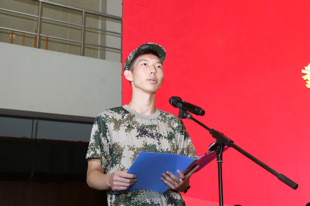 院党委副书记、新生军训工作领导小组组长周传林宣读了《关于成立2019级大学生军训工作领导小组的通知》和《关于组建2019级大学生军训团的命令》。参训学生代表、轨道交通学院房席冰、军训教官代表吕鹏先后发言。