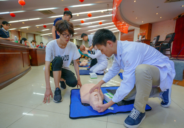 为增强师生对健康的关注,及时了解自己的身体情况,做到心肺疾病会判断、会急救,提升应对身体突发状况的心理素质和急救能力,9月18日下午,逸夫医院“救在身边”团队来院开展了心肺复苏急救讲座与操作培训。讲座培训在明德楼报告厅举行,300余名师生参加。