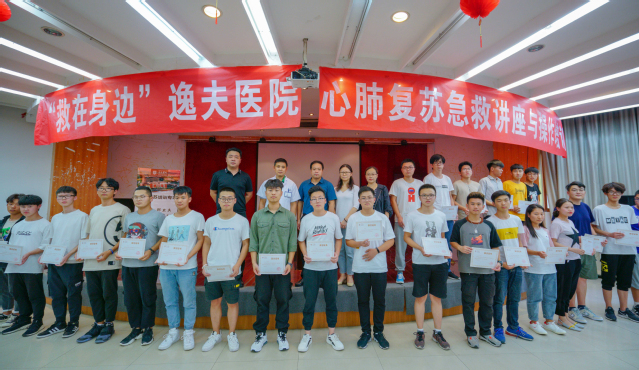 讲座之后,“救在身边”团队现场培训了心肺复苏的操作方法,部分同学参加了实操培训,初步掌握了技术要领,40多名学生取得了培训证书。