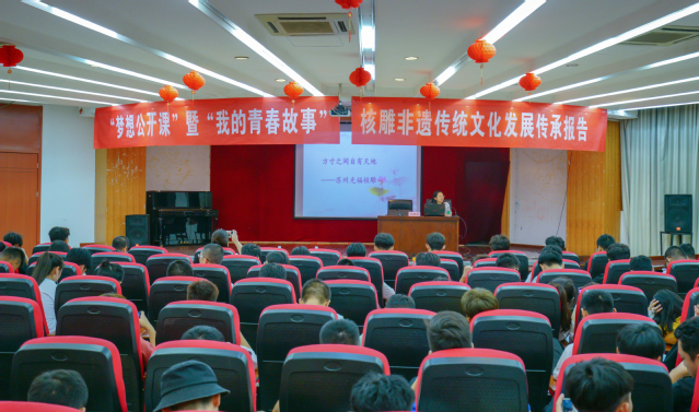 核雕工艺是中国传统民间微型雕刻工艺,已被列入第二批国家级非物质文化遗产名录,是中华传统手工文化的代表之一。活动以“梦想公开课”暨“我的青春故事报告会”形式开展。朱蒙佳老师是核雕的非遗传承人,她从专业角度与同学们分享了核雕的起源、发展、工艺技巧,以及她本人的传统文化情结、与核雕的不解之缘。她对核雕的学习、传承过程就是一部青春励志故事,是始终怀着弘扬优秀传统文化的梦想的结果,她的传统文化梦、青春励志梦激励了在场同学,增强了他们的传统文化情怀和素养。