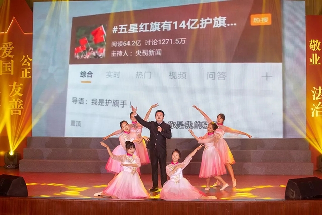 南京交通职业技术学院的男声独唱《红旗飘飘》,让大家在雄壮歌声中感受到新中国的荣光。