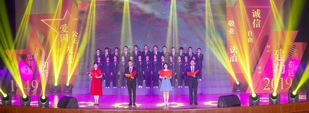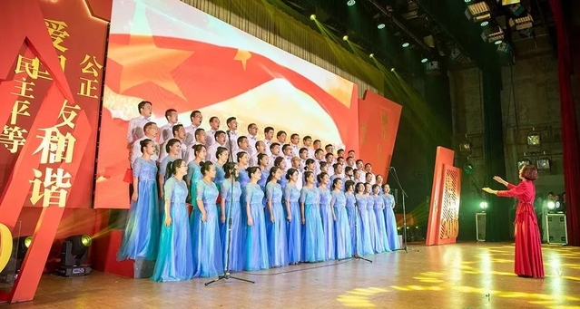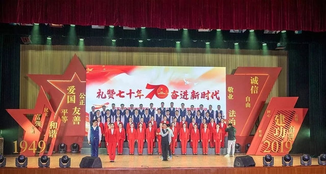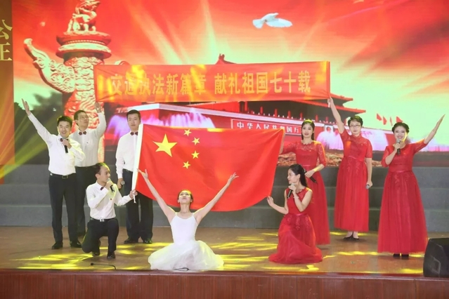 节目接近尾声,全体厅领导登台,与所有演职人员和观众一起,深情演唱《我和我的祖国》,共同为我们的祖国唱响心中的赞歌,祝福伟大的祖国明天更加美好。