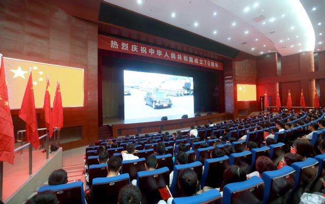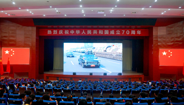 在新中国成立70周年的喜庆时刻,学院师生满怀着喜悦和激动的心情齐聚一堂,聆听学习习近平总书记重要讲话,收看庆祝大会盛况直播,共同见证伟大历史时刻,祝福伟大祖国。
