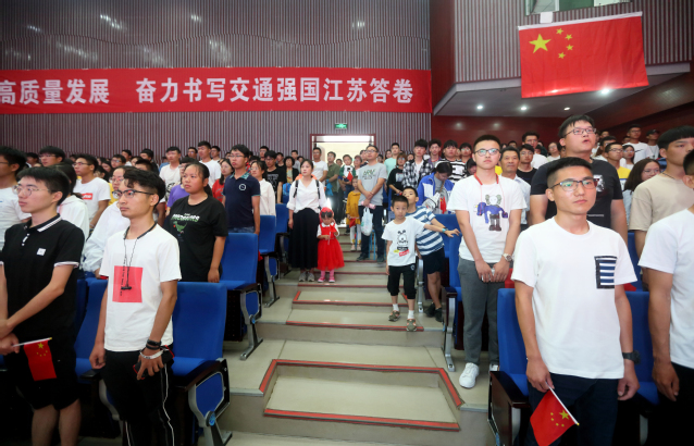 报告厅内布满五星红旗,全体师生与庆典现场同步起立,齐唱国歌,向伟大祖国献上最深情的告白。从阅兵式开始到群众游行活动结束,大家认真观看,共同感受伟大祖国的繁荣富强。现场,鲜艳国旗辉映赤诚“中国心”,军乐声与掌声热烈交汇,大家用热情和专注表达爱国爱党的真挚情怀。
