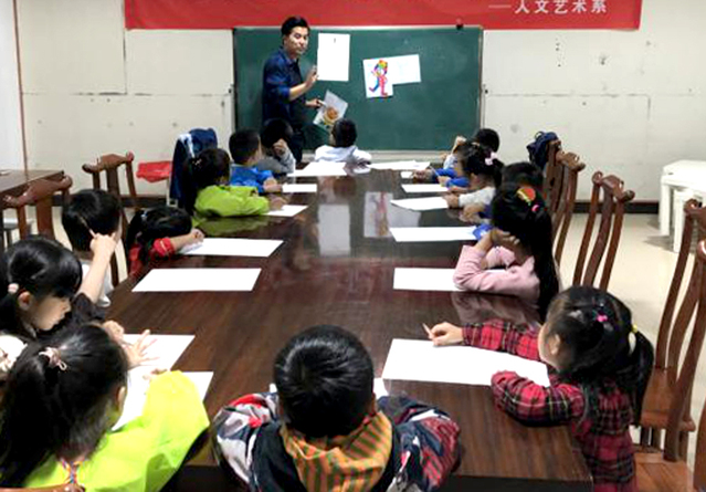 为了以特色服务更好地服务全院教职工,工会和人文艺术系于每周五为教职工子女开展美术教学活动。兴趣班涉及课程内容主要为儿童画、纸版画、陶艺制作等,旨在培养小朋友们的创造性思维、激发他们的绘画兴趣。