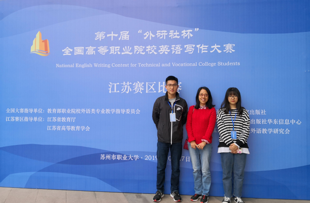 10月27日,由教育部职业院校外语类专业教学指导委员会、外语教学与研究出版社主办,省教育厅指导的第十届“外研社杯”全国高职高专英语写作大赛(江苏赛区复赛)在苏州举行。学院选送的运输管理学院1830231班吴仪、张津瑞同学表现出色,分获大赛公共英语组二等奖、三等奖,蒋曙老师荣获优秀指导教师奖。