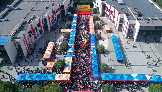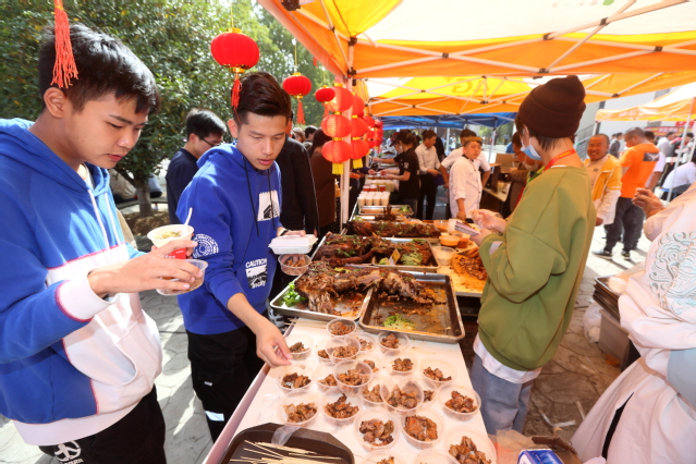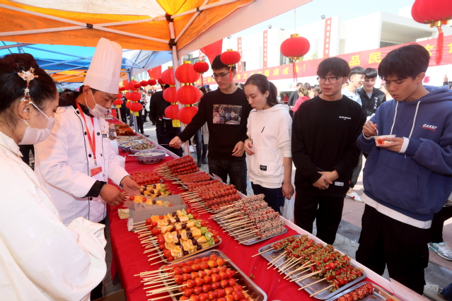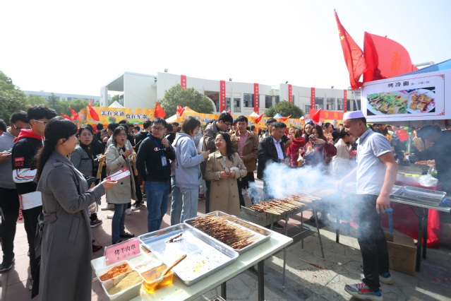 寻味校园,点缀金秋。10月30日中午,学院第二届校园美食节在思源堂广场美味绽放,荟萃各地特色的数百种美食向广大师生发出热情邀约,受到热烈追捧。学院党委书记贾俐俐,院长张毅等院领导,江苏省高等学校后勤协会副会长兼秘书长黄在宇,江宁市场监督管理局高新园分局负责人,南京医科大学、中国药科大学、南京理工大学、南京晓庄学院,江苏海事职业技术学院、江苏农林职业技术学院、江苏经贸职业技术学院、南京工业职业技术学院等院校代表出席开幕式并观摩了活动。