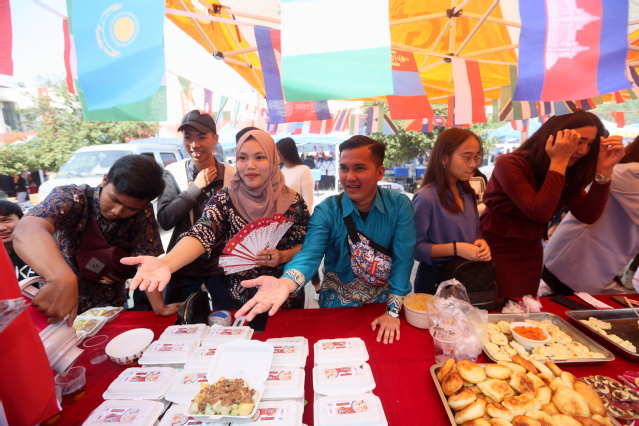 学生食堂的五个餐饮单位的厨师们齐聚亮相,一展厨艺,各色菜品琳琅满目,龙狮队、健美操队、街舞团等学生社团活力助阵,汇成一道活色生香的美食交响。食材和巧手相遇,成就出精彩无限——在大厨们的精雕细琢下,每一道美食最终以色香味形俱佳的姿态呈现在大家眼前。中西糕点造型各异、别具匠心,果蔬雕刻刀工精湛、妙趣横生,各式菜肴新潮新颖、多彩丰富,赢得大家的交口称赞。师生们手持美食券,三五成群流连在展位前,淮扬经典、川味风情、民族风味,留学生们精心制作的异域美食……让身在异乡的学子们不出校门也能感受美味乡愁。大家在非凡的味蕾刺激中领略美食文化魅力,乐享“美时美刻”。现场还以主题展板、有奖问答等趣味形式开展了健康饮食、食品安全知识宣传,评选出了最佳人气美食奖、厨师厨艺优秀作品,举办了首届“家乡味道”学生厨艺大赛。
