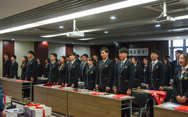 开班仪式上,首次展示了青马班的班旗和班徽,王院长给青马班进行了授旗,青马学员以小组形式展示了队旗、口号、组歌,现场气氛热烈。本期培训班在总结前九期办班经验的基础上,按照上级团组织对“青马工程”提出的目标要求,对教学作了重大调整,课程内容包含理论篇、实务篇、实践篇、自学篇和考核篇等五方面,对全院79名学生骨干进行为期半年的集中培训和跟踪培养。同时,为进一步落实共青团改革关于基层组织建设的要求,按照《团章》要求,成立了“青年马克思主义者培养工程”培训班临时团支部,姚江雨同学任支部书记并在大会上代表全体学员做了表态发言。为强化培训效果,帮助学员深入学习理论、参会领导向学员赠送了《习近平关于青少年和共青团工作论述摘编》。青马学员精心准备了朗诵《青春中国》抒发了他们对于共产党领导下的辉煌中国的热爱。