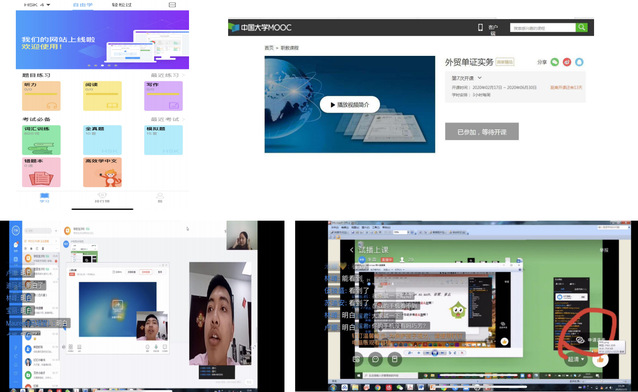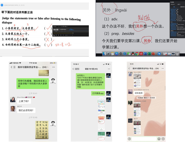 线上授课对教师和留学生们都提出了新要求。与中国学生相比,留学生因语言、习惯、信息技术等因素影响,仅下载软件进入授课班级群就需要一对一的精准辅导。此外,他们还需要克服时差、地域、技术、基础网络等问题。为扎实做好在线教学工作,国际合作与交流办公室化压力为动力,在充分调研留学生需求基础上,调整课程安排和教学时间,与授课教师商讨教学平台的选择,积极组织教师参加学院在线教学网络培训,建立起“网络课程资源+直播教学平台+微信群+课前课后作业”授课模式。