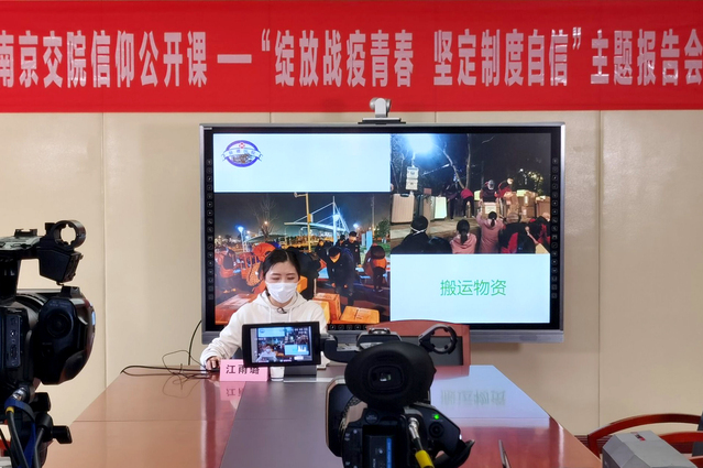 江雨璐同志是鼓楼医院门急诊团总支委员、第四支部书记,援鄂期间,担任南京市支援湖北医疗队前线团支部书记、青年突击队队长。她在课上分享了驰援武汉50多个日夜的切身经历和感人事迹,她与医疗队的战友们与死神赛跑,挽救了一个个患者的生命。面对异常严峻的疫情形势,她扛责在肩,冲锋在前,始终战斗在武汉同济医院重症病区,救治最危重的新冠肺炎患者,用自己的实际行动践行了党和人民的嘱托,诠释了“医者仁心 大爱无疆”的职业精神,给患者带去了生的希望。直播平台显示,7500余名师生在线观课,受到了深刻的教育和洗礼,纷纷以在线留言的形式表达敬意。