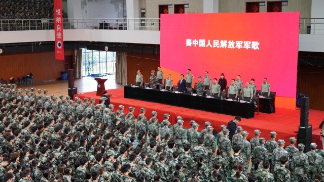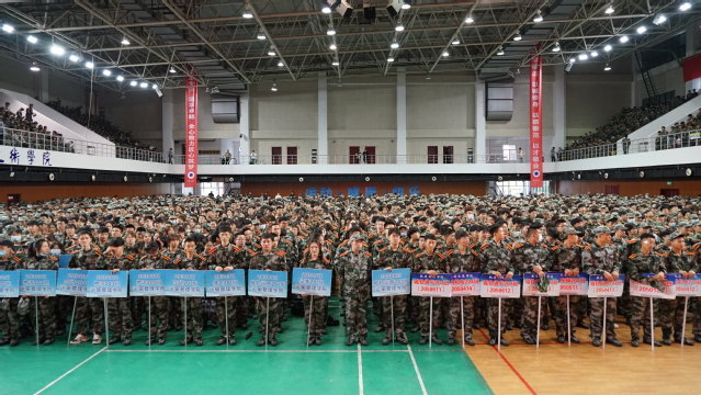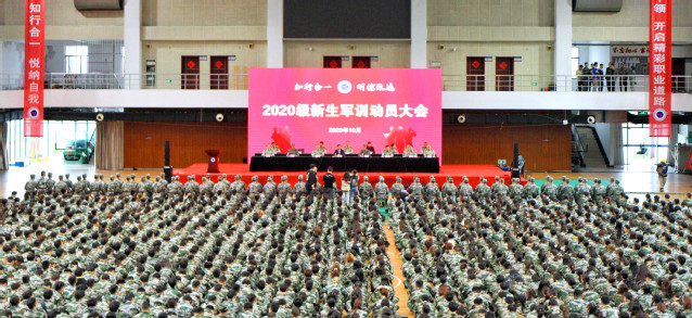 10月16日下午,学院2020级新生军训动员大会在行健馆隆重举行。学院副院长、新生军训工作领导小组组长王道峰,承训部队副参谋长、新生军训工作领导小组组长李林,承训部队教导员、新生军训团团长茆健宁以及军训工作领导小组全体成员出席大会,军训团各级指战员以及全体参训新生等4200余人参加了动员会。